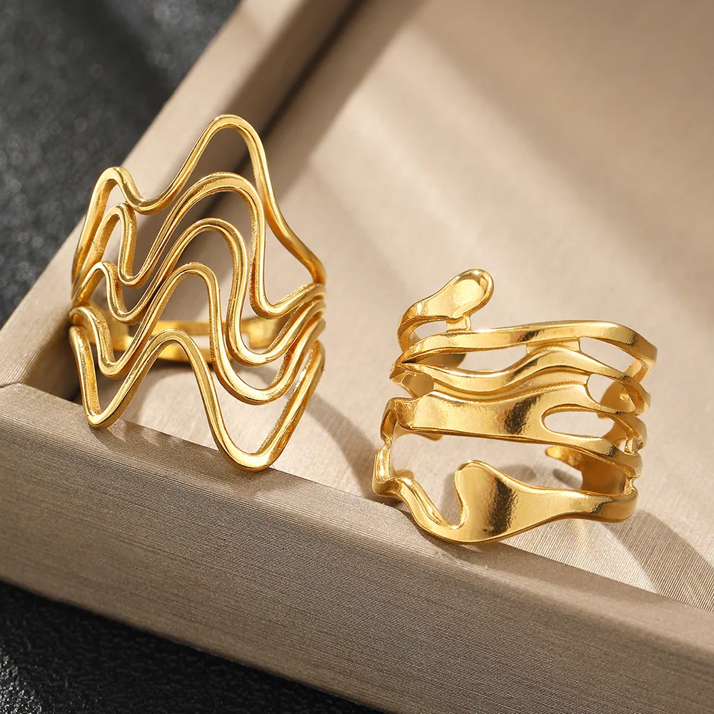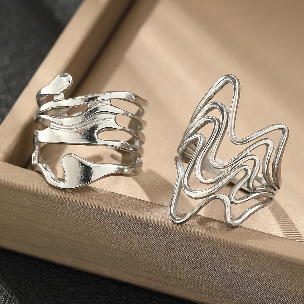 GeoPulse – טבעת גאומטרית פתוחה מנירוסטה וטיטניום
